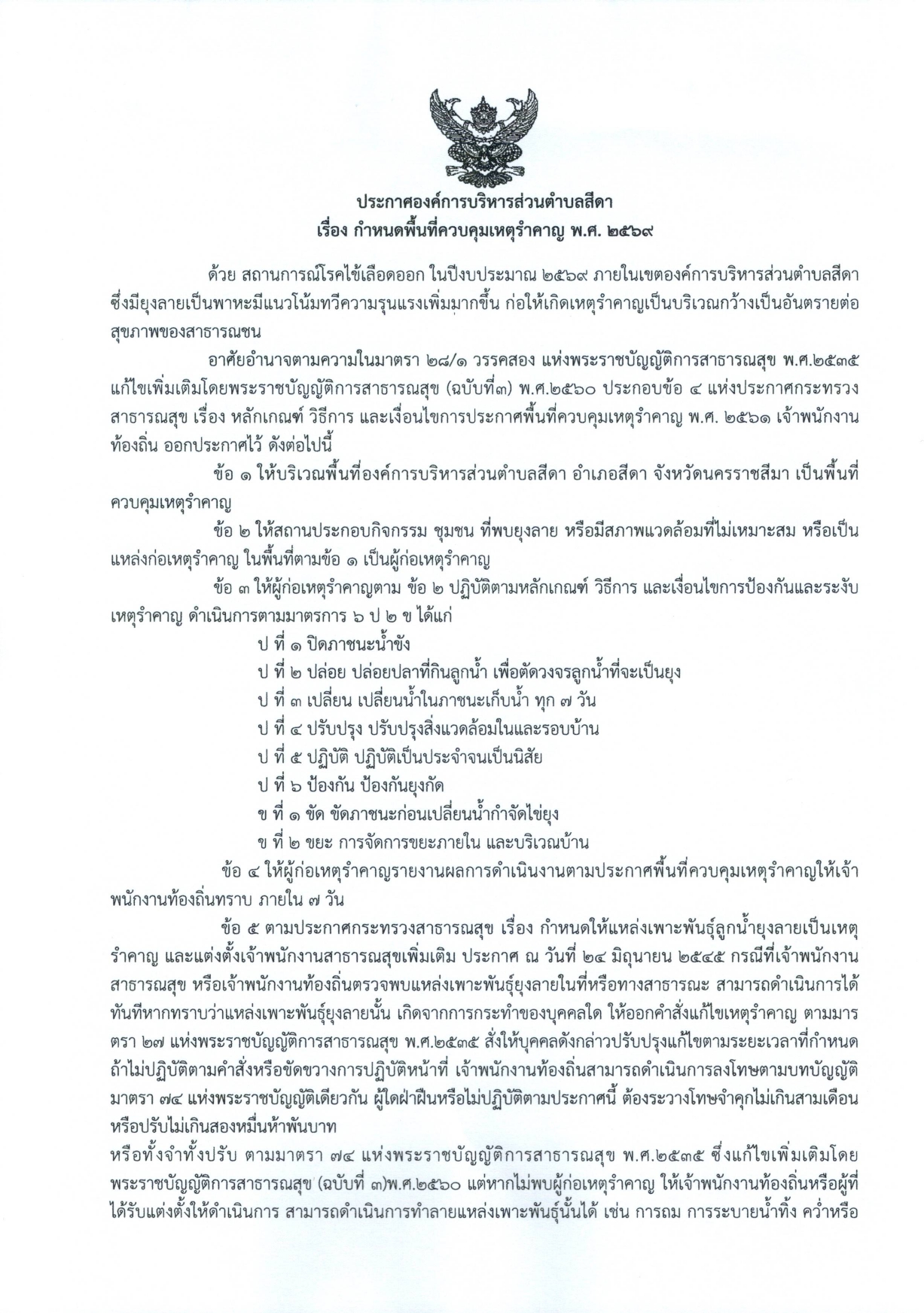 ประกาศองค์การบริหารส่วนตำบลสีดา เรื่อง กำหนดพื้น...