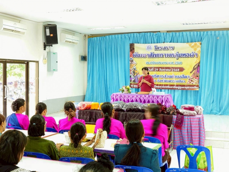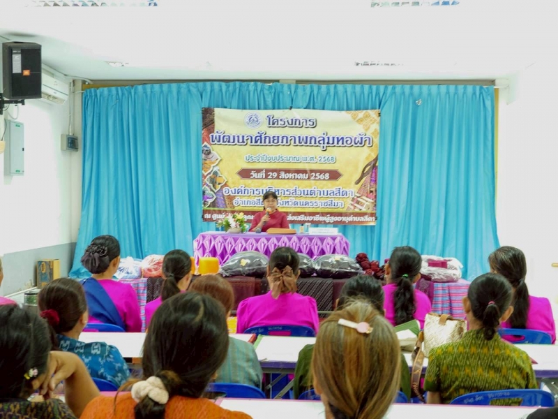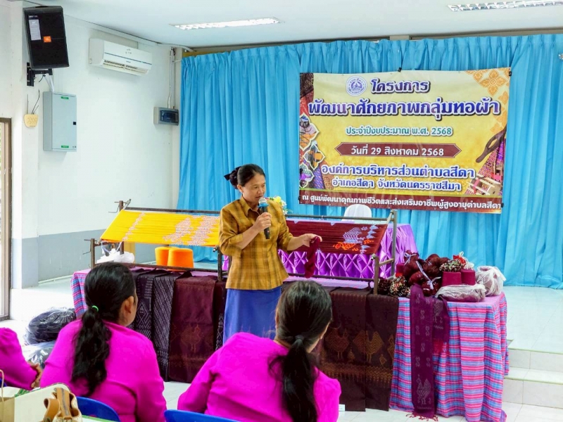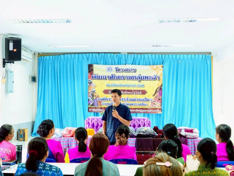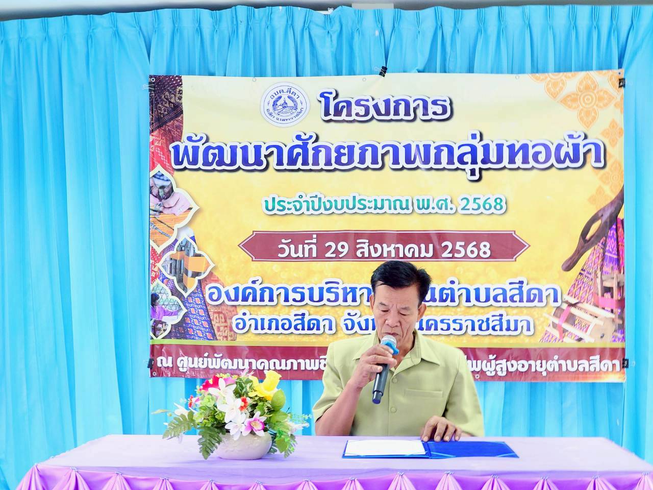 วันที่ 29 สิงหาคม 2568 เวลา 09.00 น. นายวิโรจน์ จุลวิทัศน์ นายกองค์การบริหารส่วนตำบลสีดา ได้เป็นประธานในพิธีเปิดโครงการพัฒนาศักยภาพกลุ่มทอผ้า ประจำปีงบประมาณ พ.ศ. 2568 โดยมี นายชานน ไกรกลาง ปลัดองค์การบริหารส่วนตำบลสีดา เป็นผู้กล่าวรายงาน และมีวิทยากร โดย นางจริพร ทีนะกุล นักวิชาการพัฒนาชุมชนชำนาญการ บรรยายเรื่อง "แนวทางการส่งเสริมและพัฒนาศักยภาพกลุ่มทอผ้า" และ นางนางน้อย เติมสวัสดิ์ ประธานกลุ่มทอผ้าบ้านหญ้าคา บรรยายเรื่อง "ศิลปะการทอผ้าและเอกลักษณ์ลายผ้าประจำท้องถิ่น" ณ ศูนย์พัฒนาคุณภาพชีวิตและส่งเสริมอาชีพผู้สูงอายุตำบลสีดา อำเภอสีดา จังหวัดนครราชสีมา