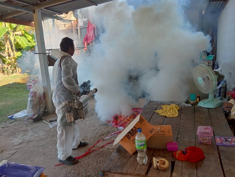 เนื่องจาก รพ.สต.หินแห่ ประสานแจ้งเรื่องผู้ป่วยโรคไข้เลือดออก จำนวน 1 ราย เป็นประชาชนหมู่ที่ 9 บ้านถนนหัก จึงได้มีการปฏิบัติการพ่นหมอกควันเพื่อกำจัดตัวแก่ยุงลาย